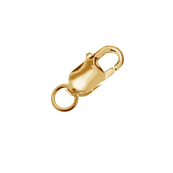 Il modello a fagiolo — chiamato anche moschettone, grazie al meccanismo a molla identico — presenta una forma ergonomica simile a un fagiolo. Premendo la leva si apre, permettendo un aggancio rapido all’altra estremità del gioiello. Una volta rilasciato, torna automaticamente in posizione chiusa.