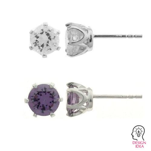 Orecchino a perno con cestello - base per piercing zircone rotondo 6mm, argento AG 925