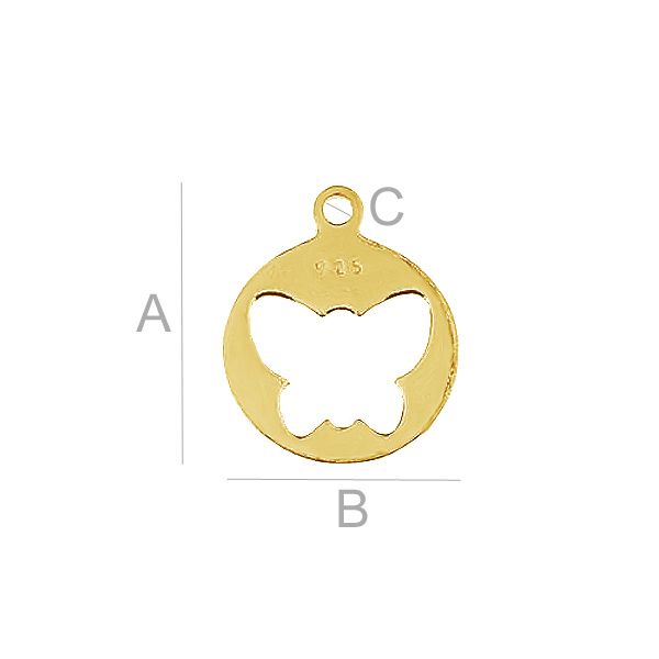 Ciondolo - piastra tonda - farfalla, argento AG 925