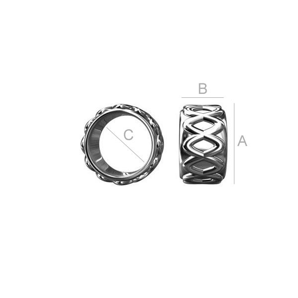 A=8,70 mm; B=4,80 mm; C=6,60 mm, argento sterlina (AG-925)