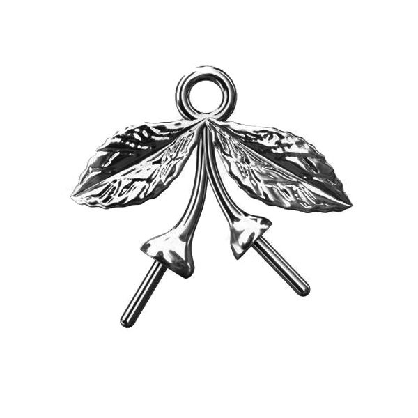 Elemento coperto da uno strato di rodio. Gli elementi rodia turati non si scuriscono e non perdono brillantezza. Sono resistenti a qualsiasi scolorimento. Visivamente, sono più scuri rispetto alla versione argento e assomigliano all'oro bianco. Lo spessore rodiatura varia 0,2 μm.