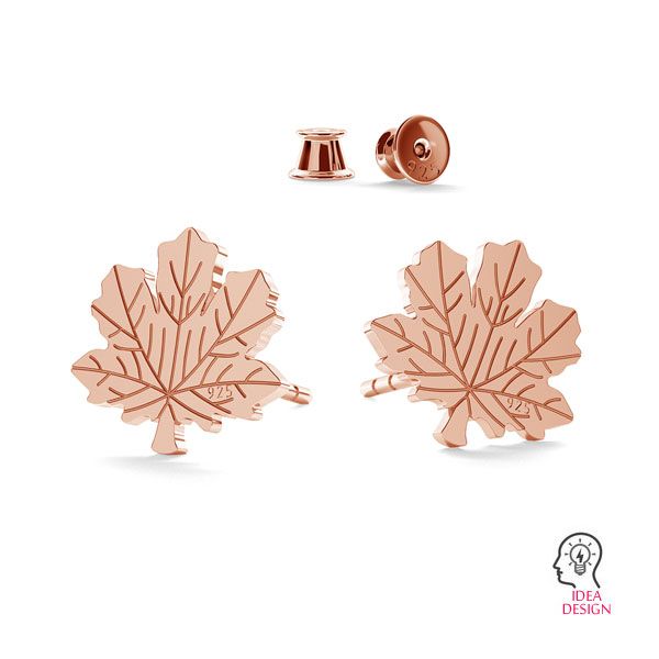 Orecchino a bottone - foglia, argento AG 925