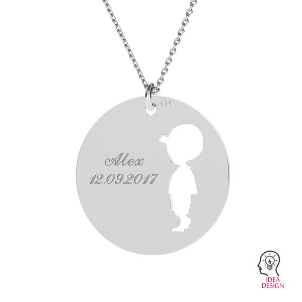 Ciondolo - piastra rotonda - ragazzo, argento AG 925