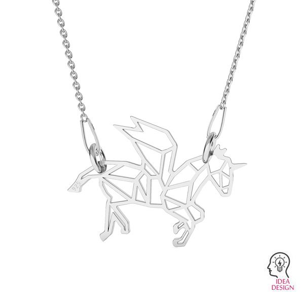Ciondolo connettore traforato - origami pegasus, argento AG 925