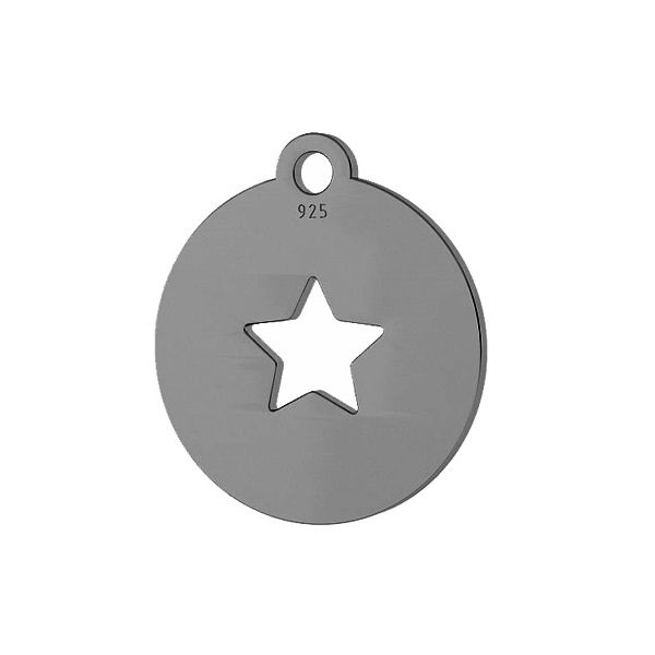 Ciondolo - piastra rotonda con stella ritagliata, argento AG 925