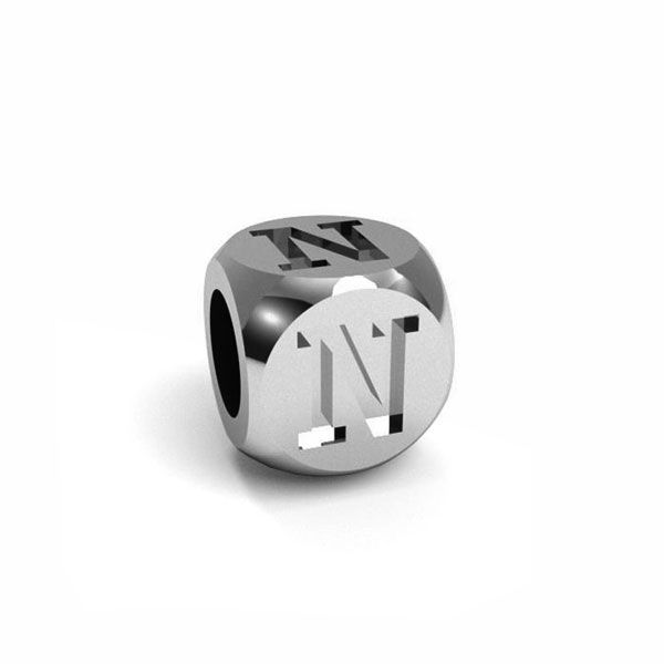 Ciondolo con perline - lettera cubica N, argento AG 925