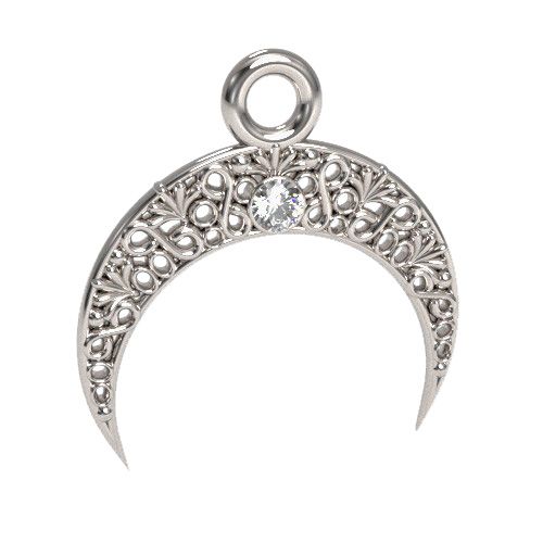 Ciondolo traforato - luna con pietra, argento AG 925