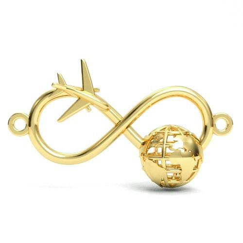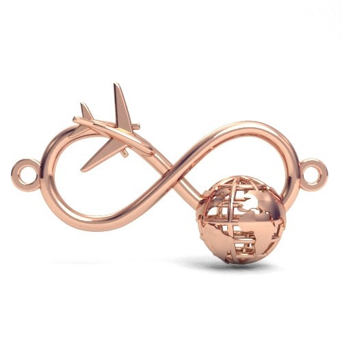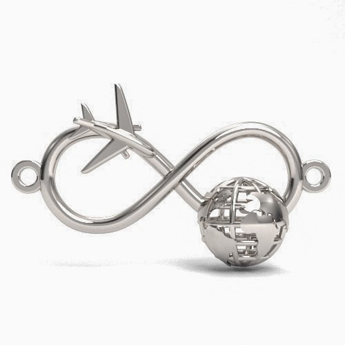 Ciondolo connettore - infinito con globo e aereo, argento AG 925