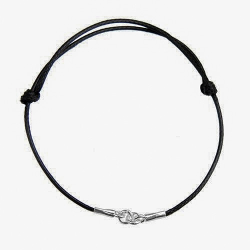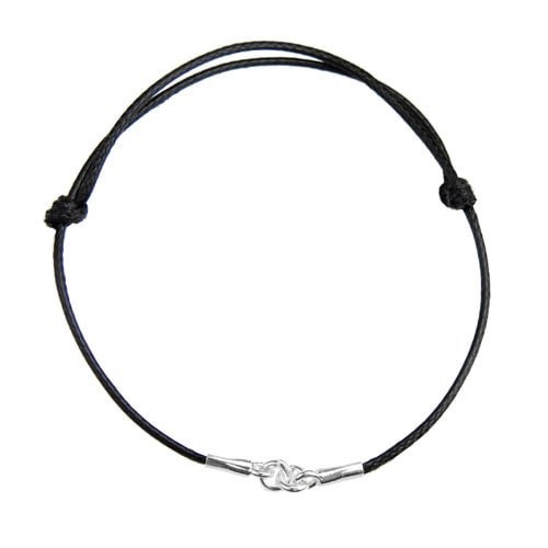 Bracciale in cordoncino cerato - regolabile - nero, argento AG 925