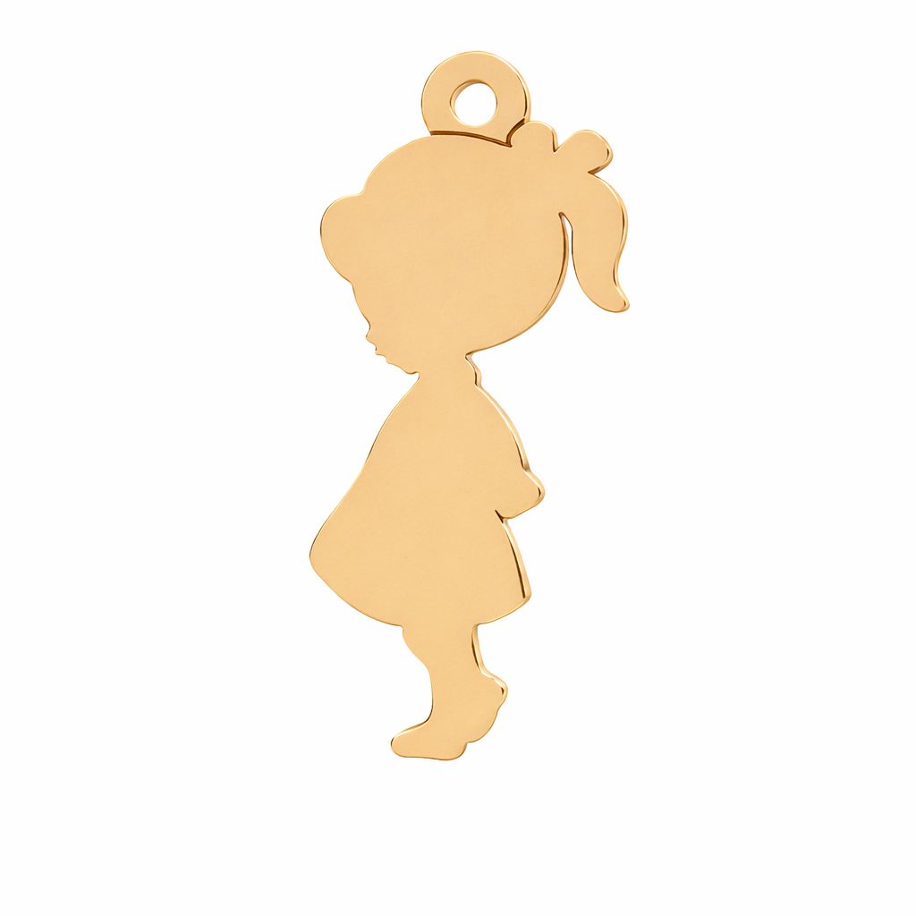 Il ciondolo bambina è un delicato motivo gioielliero a forma di silhouette di bambino. Realizzato in ottone, con superficie liscia e piccolo anello per la sospensione. Ideale per collane, bracciali e gioielli dal significato familiare.